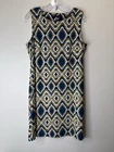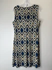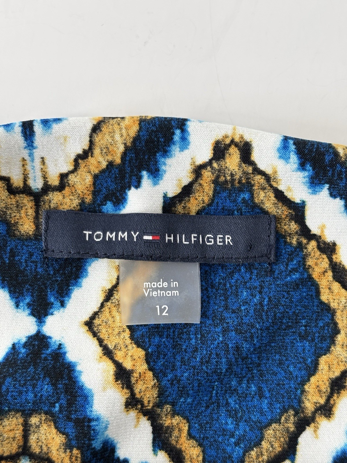 Tommy Hilfiger sleeveless dress blue/white/ gold geometric print size 12 good condition 19 inches from pit to pit, 35 inches from shoulder to hem