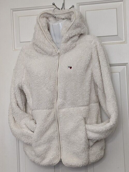 Tommy Hilfiger Women's Hooded Fleece Jacket Size Small White . Pre-Owner Condition. Chest = 21" Lenght = 24"