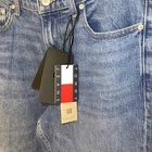 Crafted for comfort and style, the Tommy Hilfiger Isaac Relaxed Tapered Jeans are a versatile addition to any man's wardrobe. These jeans feature a classic blue hue, complemented by the subtle elegance of the Tommy Hilfiger logo, button, and zipper accents. The cotton elastane material ensures a balance between durability and a soft, flexible fit that moves with you. Designed with a regular fit in mind, these size 32 jeans boast a tapered leg style that flatters the silhouette without sacrificing comfort. Practicality is not overlooked, as they come equipped with functional pockets and are secured with both a button and zip closure. Whether you're out for a casual day or dressing up for an evening event, these pants are sure to be a go-to in your clothing rotation. Rare hard to find possible one of a kind salesman sample/not for resell!