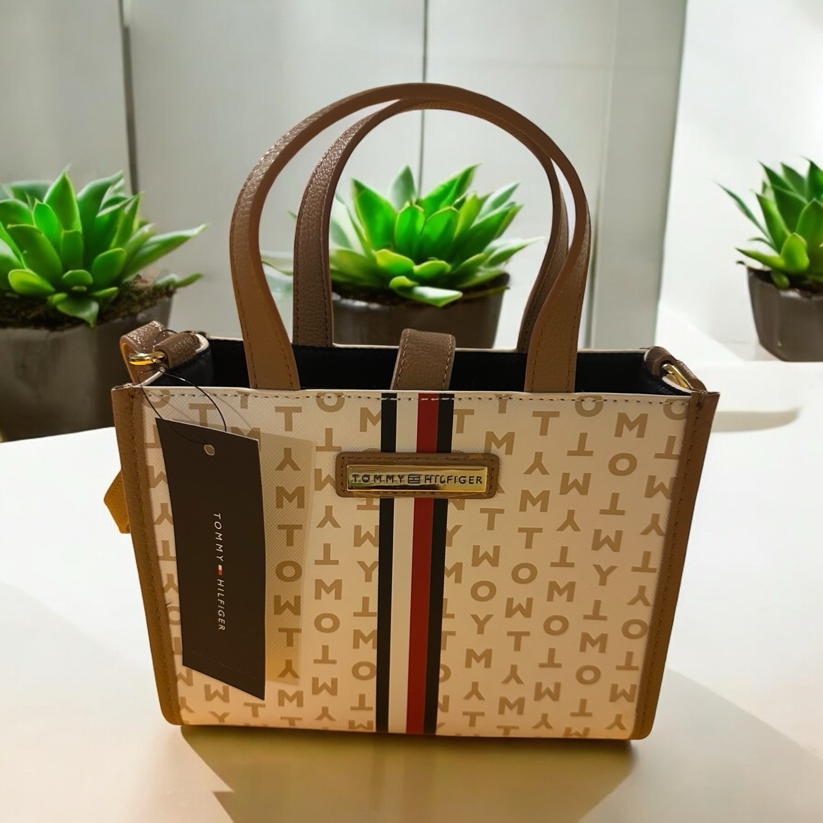 Crafted for the modern woman, the Original Tommy Hilfiger Crossbody Hand Purse, 69j9622 100 DHE model, combines functionality with elegance. The bag features a timeless monogram pattern in a chalky white PVC exterior, complemented by a rich navy lining. Gold-plated hardware adds a touch of sophistication, while the faux leather crossbody strap ensures comfortable wear. With a rectangular shape and magnetic closure, this small-sized purse is ideal for various occasions, from casual outings to cocktail parties and travel. The stamped finish enhances the design, ensuring that every detail stands out. Whether for workwear or social events, this Tommy Hilfiger tote is a stylish accessory for any ensemble. Please note that picture colors may differ slightly from the actual product. MSRP $108 UPC 197232422981 Kindly note: While we strive toensure the colors displayed in the image are as true to life as possible,variations in lighting, monitor calibration, and screen settings may causeslight differences in color appearance. We appreciate your understanding.