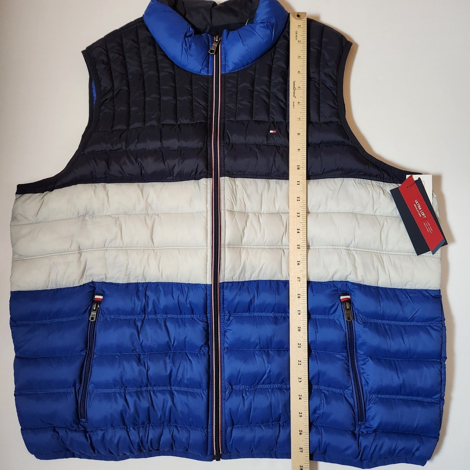 Tommy Hilfiger royal blue color block 100% nylon pocketed zip closure unworn condition with tags Please go by the photos and typed description (not auto fill) for item details. Any questions, just ask!