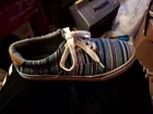 Elevate your casual style with these Tommy Hilfiger Awmaritza boat shoes. Perfect for any occasion, whether it's a day out on the town or a day at the office, these shoes feature a closed toe and lace-up closure for a secure fit. The cotton blend upper material is breathable and comfortable, while the fabric lining material adds an extra layer of comfort. These limited edition shoes are lightweight and non-slip, making them perfect for any season. The multicolor striped pattern and hipster, school, hippie, graffiti, college, 90s, southwestern, and retro themes add a touch of personality to any outfit. Available in men's US shoe size 9.5 and UK shoe size 9, these shoes are a must-have addition to any shoe collection.