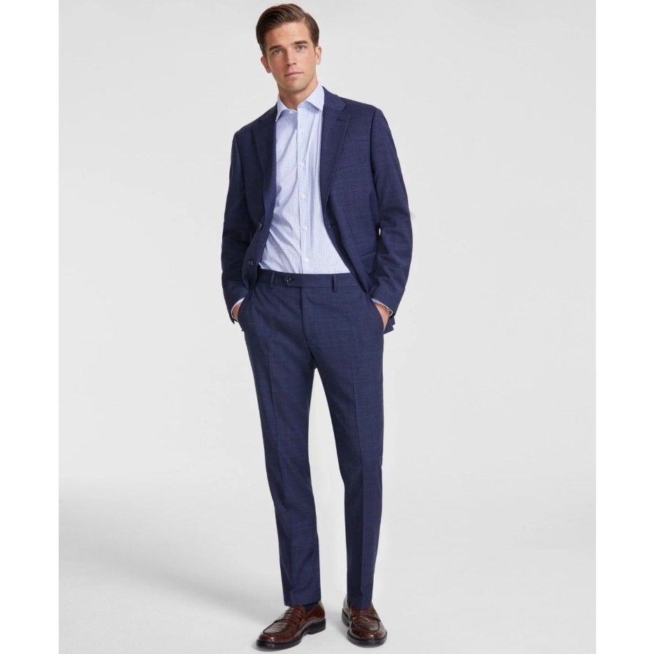 Tommy Hilfiger Men's Blue Plaid Wool Blend Ryland Modern Suit Pants Size 32x30 New with tags MSRP $190 Athletic modern fit Flat front Finished hem, no cuff Two side slant pockets Two back button-through welt pockets Permanent crease Zip fly with button and hook-and-eye closures Belt loops Sit at the waist Trim fit through the hips and thighs with a slightly tapered leg opening 52% wool / 46% polyester / 3% spandex Dry clean