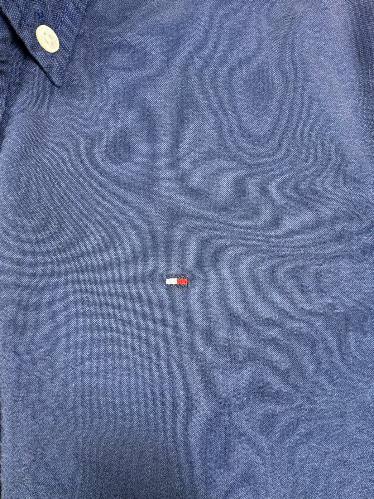 This Tommy Hilfiger Blue Long Sleeve Button Down Shirt in size Large is a classic and versatile addition to any man's wardrobe. Made of comfortable cotton material, it features a solid blue color with the brand's signature logo accent. The collared neck and button closure add a touch of sophistication, making it suitable for casual occasions year-round. Easy to care for with machine washable instructions, this regular fit shirt is perfect for all seasons and is part of the Tommy Hilfiger Tommy Jeans product line.