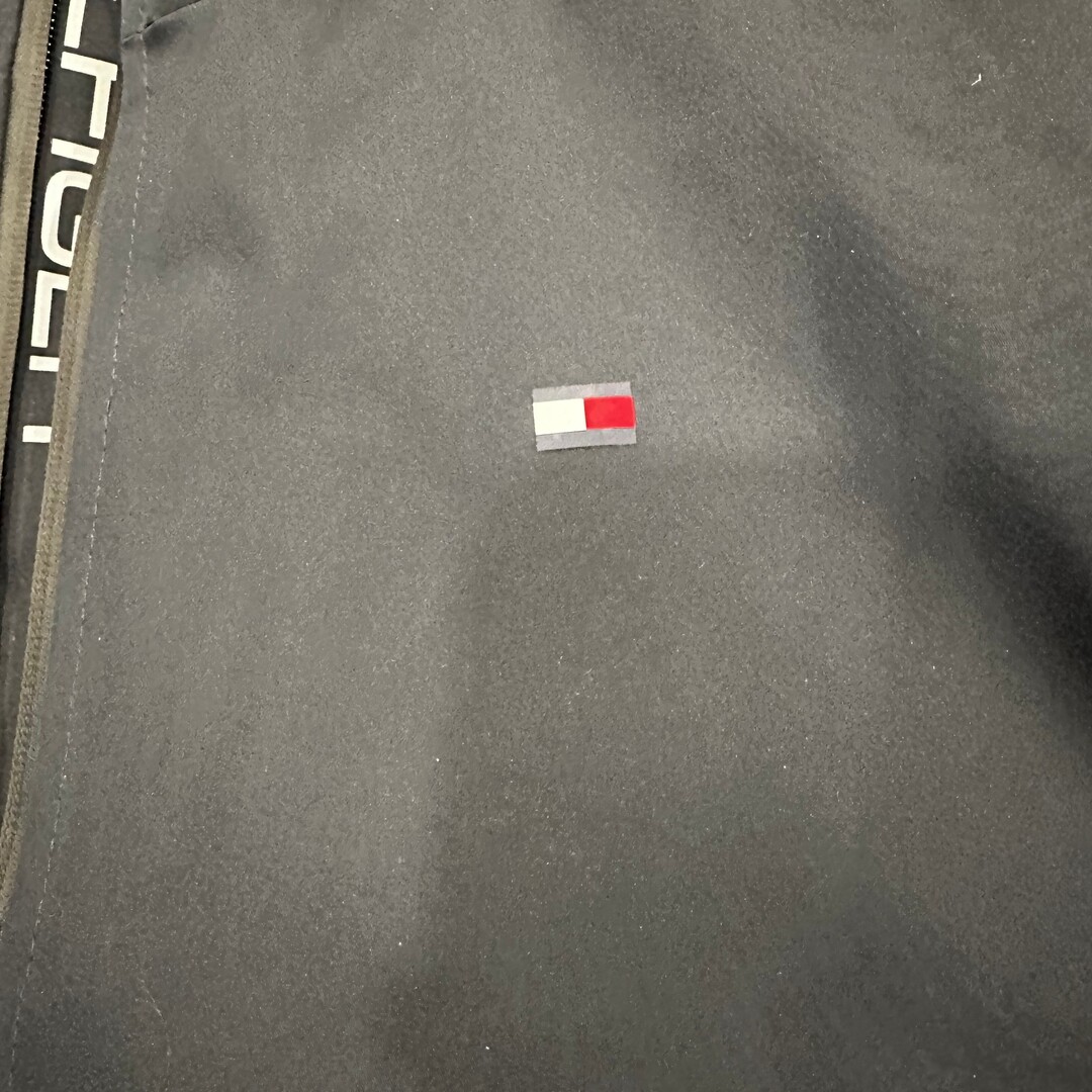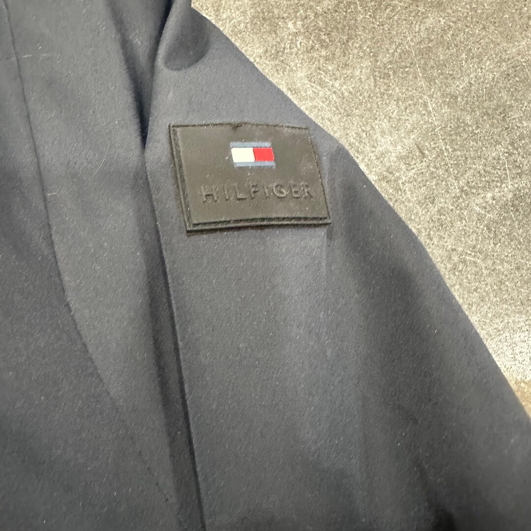 This men's navy blue performance hooded jacket by Tommy Hilfiger combines style and functionality. It features a comfortable fit with a hood for extra warmth and protection. Perfect for layering in cooler weather, this jacket offers practicality with zippered pockets and a sleek design. Ideal for both casual and active wear.