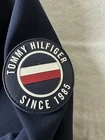 This jacket has a small spot on the arm as seen in the picture. Tommy Hilfiger Men's Hooded Jacket Water Resistant, Light Soft Shell Navy Spot Please see all pictures for conditions. This is a preowned as well as to see how the below measurements were taken. ALL MEASUREMENTS ARE APPROXIMATE!! Shoulder to hem aprox: 29.5” Arm pit to arm pit aprox: 26.5” Sleeve length from armpit aprox: 26” Flat waist aprox: 19.5”
