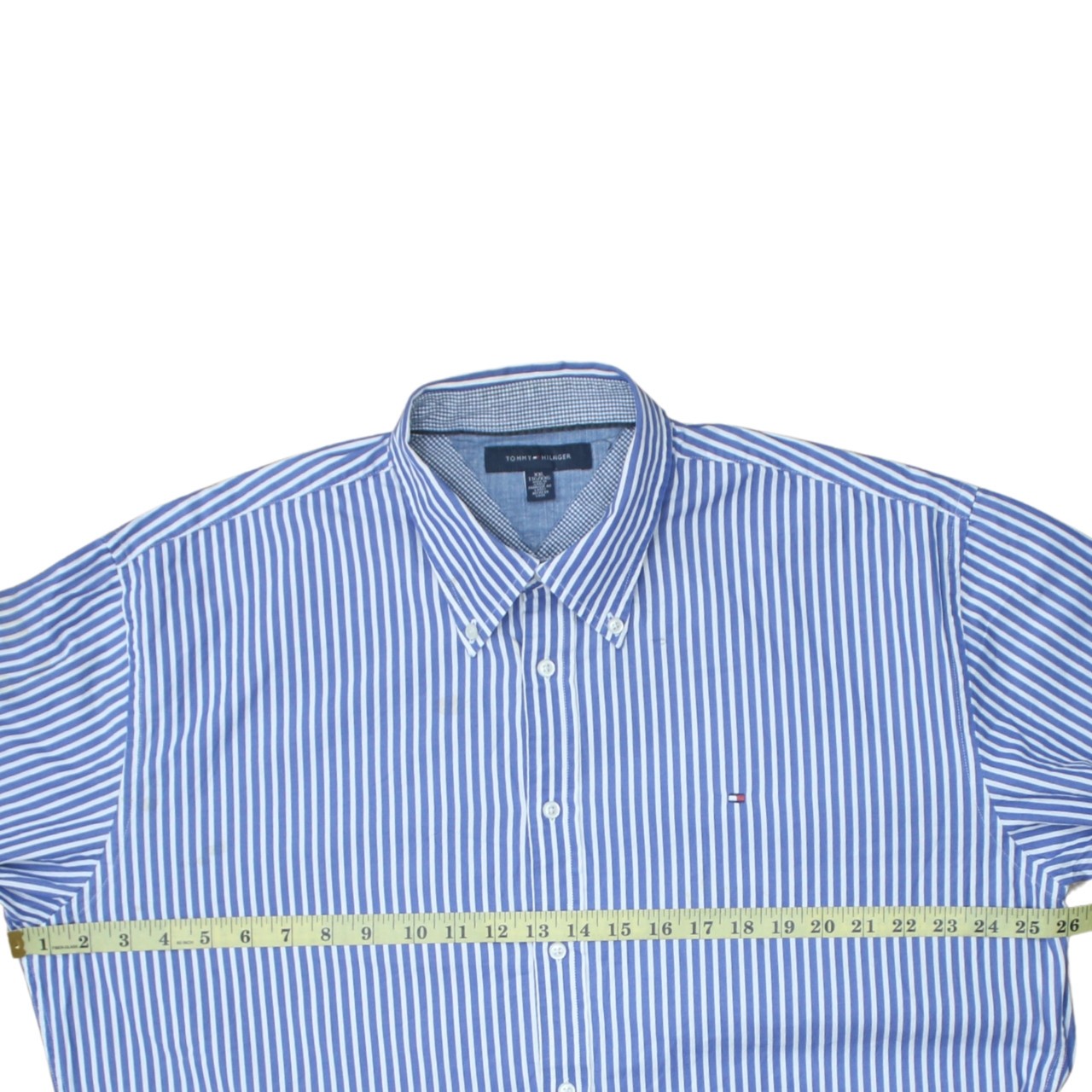 ‹ ‹ ‹ ‹ ‹ ‹ ‹ ‹ › › › › › › › › Tommy Hilfiger Blue White Stripe Shirt Men's XXLarge Button Down Collar Embroidered Flag Logo Casual Top Product Details Brand: Tommy Hilfiger Style: Long Sleeve Shirt / Button Down Shirt / Casual Shirt / Smart Casual Top Key Features: Blue white vertical stripes, button down collar, embroidered chest flag logo, long sleeves Colour: Blue and white stripe Size: XXLarge (2XL) Fit: Relaxed oversized fit, chest 26" pit to pit, length 29.5", arm 21" Material: Nylon blend Vintage Quality: Small mark on arm Measurements Chest (pit to pit): 26" Length (collar to bottom): 29.5" Arm (inside pit to cuff): 21" Features Crisp blue and white vertical stripe pattern throughout Button down collar for a neat, classic look Full button front with contrasting white buttons Embroidered Tommy Hilfiger flag logo on left chest Adjustable button cuffs with striped inner detail Quality Checks 🟠 minor stain or discoloration — see photos ✅ no noticeable odor ✅ no bobbling or wear ✅ embroidery in perfect condition ✅ all buttons intact and secure Additional Information Condition: Small mark on arm, otherwise good clean pre-owned condition. This Tommy Hilfiger striped shirt is a great everyday staple, easy to dress up or down. The relaxed XXLarge fit and lightweight fabric make it ideal for layering over a tee or wearing on its own for a smarter look. A timeless striped design and subtle embroidered logo give it that classic designer finish while keeping things versatile for work, weekends, or evenings out. Product Keywords Tommy Hilfiger, Tommy Hilfiger shirt, blue stripe shirt, blue white striped shirt, mens striped shirt, mens XXLarge shirt, mens 2XL shirt, button down shirt, long sleeve shirt, smart casual shirt, classic stripe shirt, embroidered logo shirt, Tommy flag logo, mens designer shirt, casual top, collared shirt, button front shirt, relaxed fit shirt, oversized fit shirt, nylon shirt, lightweight shirt, everyday shirt, office shirt, work shirt, weekend shirt, going out shirt, mens blue shirt, mens casual wear, mens smart shirt, vertical stripe shirt, long sleeve button shirt, Tommy Hilfiger menswear, pre-owned Tommy Hilfiger, second hand Tommy Hilfiger, mens clothing, mens fashion, vintage Tommy Hilfiger shirt, classic mens shirt, breathable shirt, wardrobe staple, striped button down, tailored look shirt, mens long sleeve top, blue mens top, white stripe mens top, Hilfiger casual shirt, Hilfiger classic stripe VCUK: 15248-04 FAST UK DELIVERY FAST GLOBAL SHIPPING 60 DAY RETURNS CONDITION GUIDE SIZING GUIDE DELIVERY INFO RETURNS INFO All our items are 100% authentic pre-loved pieces. Because they have been previously owned, light signs of wear may be present. These can include: Small marks or light stains Minor fabric pulls or tiny pinholes Gentle fading or general wear We believe these subtle imperfections add character, charm, and uniqueness to each piece. We always aim to be transparent and provide accurate listings. Any major flaws are highlighted clearly in the photos. Please review all images carefully to ensure you are happy with the item’s condition. Exact measurements and detailed item specifics can be found in the listing above. Sizing Guide Measurements: Chest 26" (pit to pit, 52" around), Length 29.5", Sleeve 21", Waist , Hips , Inseam . Fit: Labelled 2XL with relaxed, slightly oversized fit; suits a roomy XXLarge build. Notes: Check chest against a favourite shirt for best fit; good for layering over a T-shirt. We use Evri and Royal Mail to deliver all of our items. We offer a free UK shipping service using Evri 48 hour postage. We send all of our orders out on the same working day if you order before 9AM Monday - Saturday. All standard UK items should arrive within 2-3 working days. Express UK shipping is £4.95 and items should arrive within 1 working day. We ship worldwide via the eBay Global Shipping Programme (GSP). U.S. orders may incur customs duties on arrival, payable by the recipient. We'll do our best to keep things as smooth as possible on our side. All items can be returned and a refund will be issued, provided they arrive at our address within 60 days of receipt of purchase. Items returned after that period will not be eligible for a refund and there will be a charge for returning the goods to the sender. Please note, we can only refund the original cost of the item, not any postage costs. All items will be inspected upon return. They must be unused, still tagged and in the same condition you received them in. Your return must also include your original printed invoice. Any item returned to us in an unsuitable condition will not be issued with a refund. Once we have received the unwanted goods, a refund will be processed via the original payment method. Payments may take 3-5 working days to process as standard. All of our refunds are completed via eBay. Please send all returns via tracked mail as we cannot be held responsible for lost items.