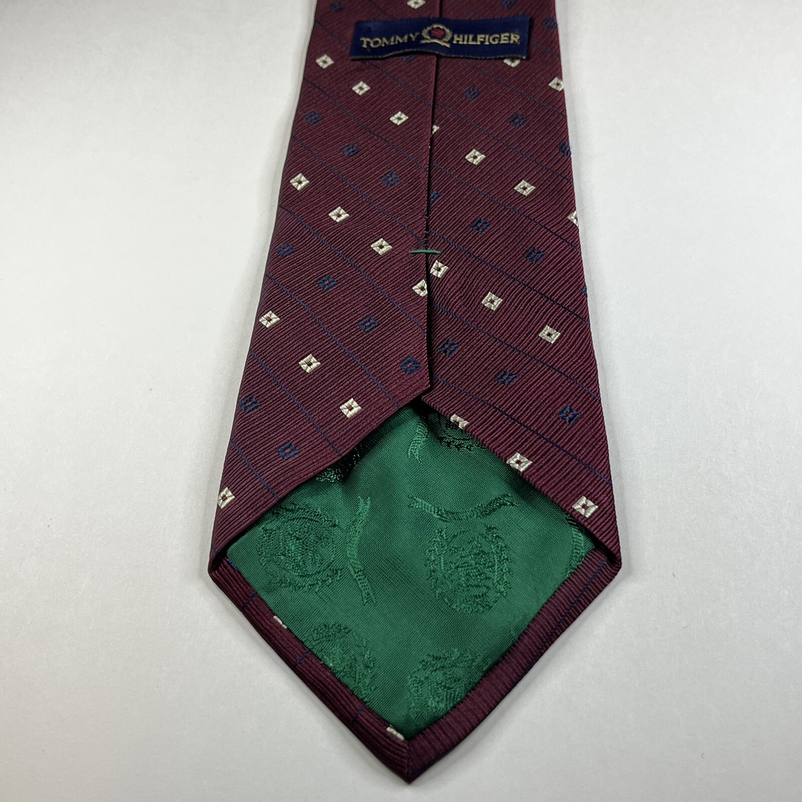 Tommy Hilfiger Mens Silk Tie Burgundy Diamond Striped 57x4 Inches