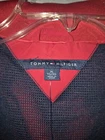 Tommy Hilfiger sailing jacket in classic red. Men's XL *Roll up hood with Velcro stays *Bound pockets *Gathered elastic back waist *Hidden ribbed wrist cuff * Mesh liner *Full zip *Embroidered logo on collar and chest Flat Lay Measurements Pit to pit: 23" Sleeve length: 26" Length: 27"