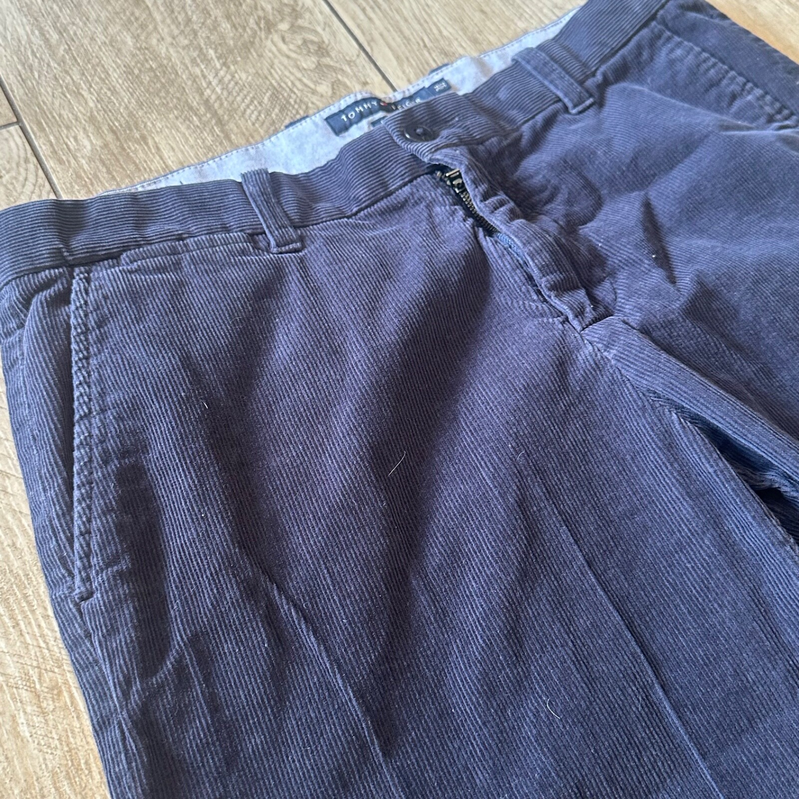 Elevate your wardrobe with the timeless sophistication of Tommy Hilfiger's Navy Blue Pinwale Corduroy Pants. Tailored for the modern man, these pants feature a comfortable regular fit with a size of 34x32, ensuring a flattering look for any occasion. The chino style merges classic design with contemporary fashion, making it a versatile addition to both casual and formal ensembles. Crafted from premium corduroy fabric, these pants boast a rich blue hue that complements a variety of shirts and shoes. The garment's durable material and thoughtful construction reflect the quality synonymous with the Tommy Hilfiger brand. Whether at the office or out for the evening, these pants are sure to enhance your attire with effortless style.