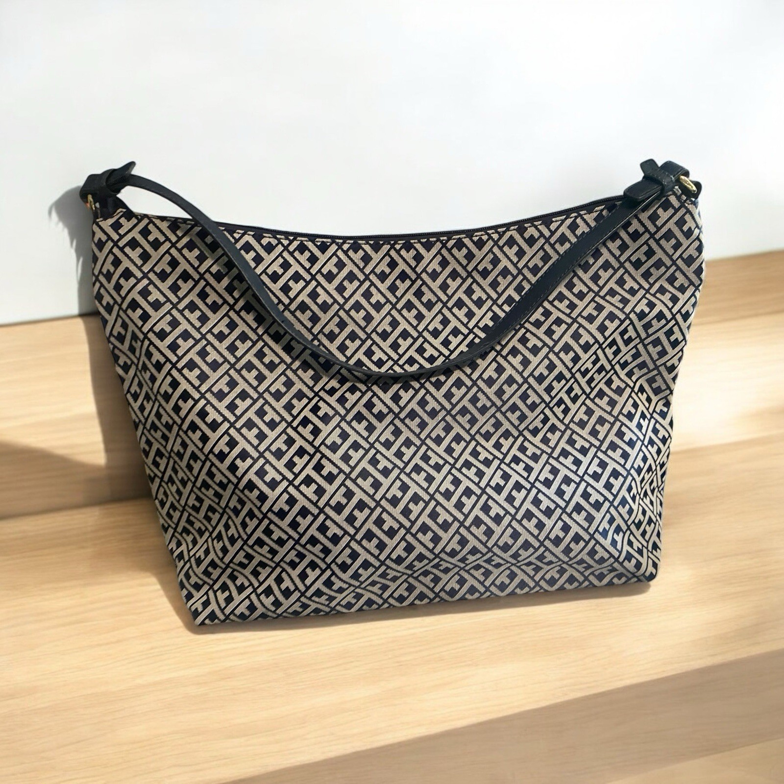 Tommy Hilfiger Navy, Blue & White Tote handbag purseGold Accents, Excellent Condition. Item # 0303