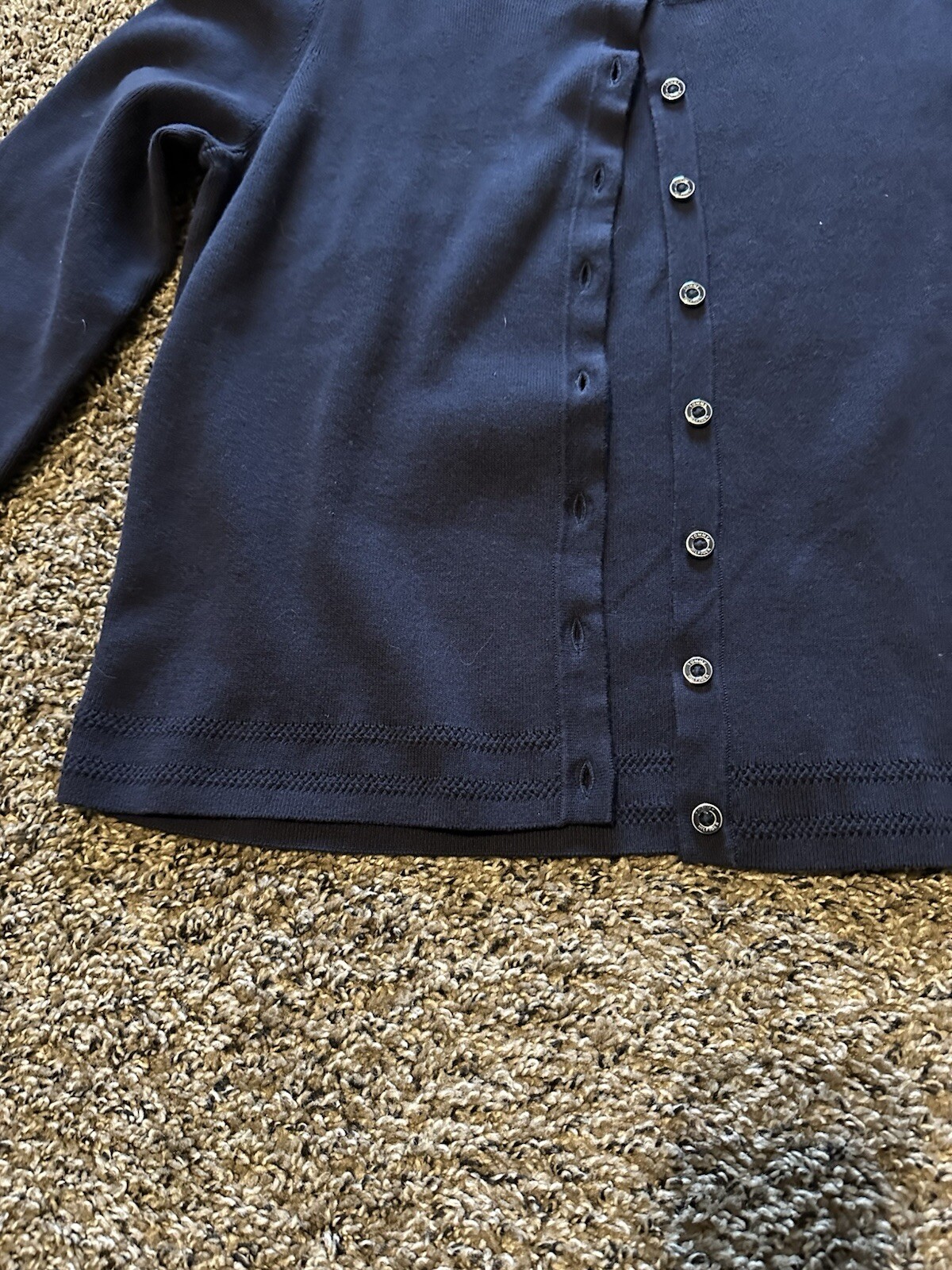 Tommy Hilfiger 100% Cotton Navy Cardigan With Eyelet Detail Size Large Women’s. Condition is Pre-owned. Shipped with USPS Ground Advantage.