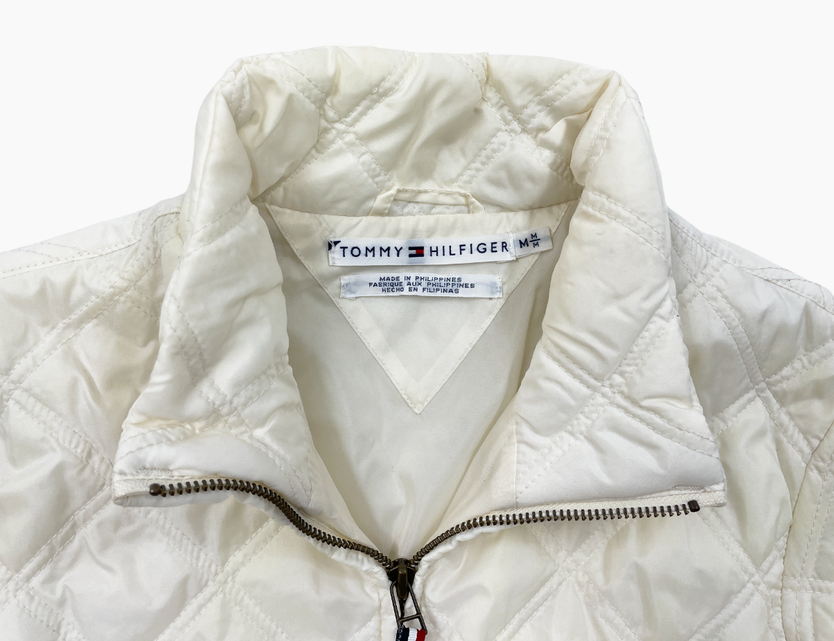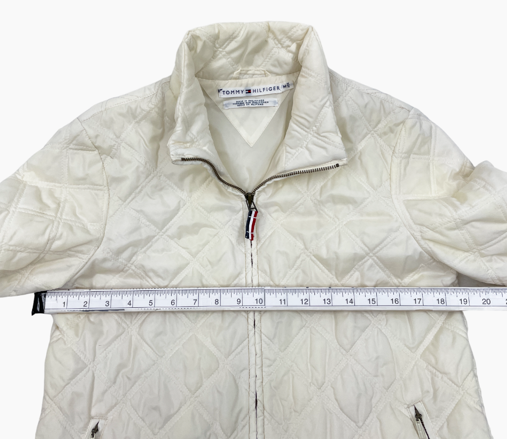 This puffer jacket is a fantastic find—lightweight yet cozy, perfect for chilly days. The off-white color is versatile and stylish, and the quilted design adds a chic touch. The seller provides clear measurements and notes the condition honestly, making it easy to shop confidently. Free returns are a great bonus, and the jacket arrives clean and ready to wear. Love the Tommy Hilfiger quality—definitely worth it!
