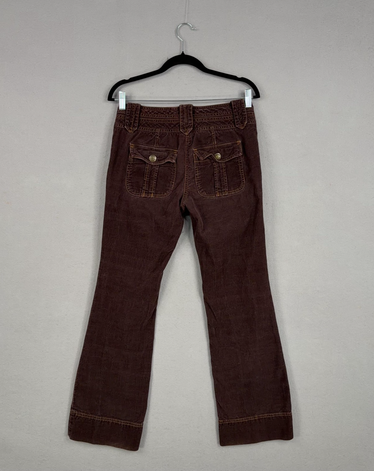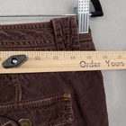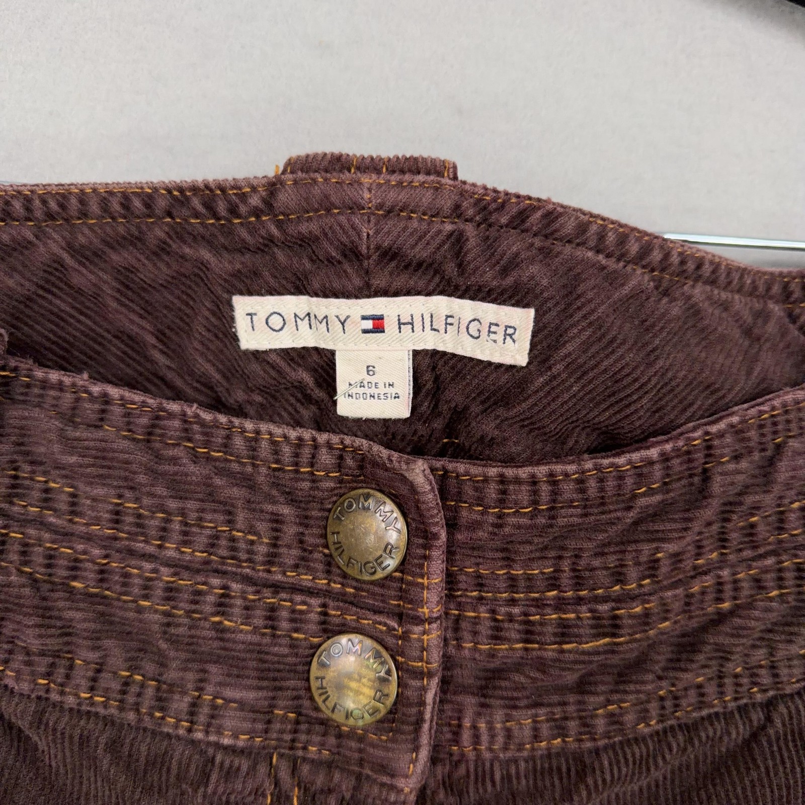 Tommy Hilfiger Pants Womens 6 Brown Corduroy Bootcut Double Button Flap Pockets Light overall wear with mild wash fade and subtle scuffing at hems. No holes or major stains observed. Buttons and zipper function properly. Brand: Tommy Hilfiger Style: Womens corduroy pants in brown with a bootcut leg. Size on tag: 6; Made in Indonesia. Details: Wide waistband with double-button front and zipper fly, Tommy Hilfiger branded metal buttons, front hand pockets, back flap pockets with button closures, belt loops, contrast topstitching. Notes: Classic corduroy texture suitable for casual wear. 22574 Measurements: - Previous washings may change the sizing written on the tag. - Please refer to the photos above for all measurements. - Please compare our measurements to that of one of your favorite garments. - Please note, item measurements are approximate . All items are bagged and sealed after being photographed, then stored in a smoke free environment to ensure the item is exactly the same as when photographed. All items have been washed per eBay standards & policies. I carefully package and ship daily. Feel free to contact me with any questions.