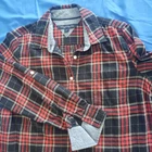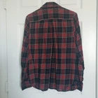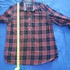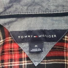 Tommy Hilfiger Pullover Flannel Shirt Size Medium. Black and Red Plaid with Denim Flip Cuff. Roll Tab Sleeve. One Breast Pocket. Shirt buttons about half way down. Lightweight flannel. Excellent condition. Returns accepted - buyer pays return shipping.