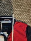 Tommy Hilfiger Colorblock Jacket Red/White/Blue Wind Resistant Men’s Size L In overall good condition, the white part has some light discoloration or staining from other fabrics. Some peeling. Please see pictures for close up details.