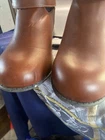 These Tommy Hilfiger riding boots in women's size 5 are a stylish and versatile addition to any wardrobe. The black knee-high boots feature a closed toe, zip closure, and a low heel for comfort. The quilted design and buckle accents add a touch of elegance, making them perfect for various occasions such as travel, activewear, or casual outings. The faux leather outsole and synthetic upper material ensure durability, while the adjustable strap and buckle detail provide a secure fit. Ideal for all seasons, these boots are a must-have for fashion-forward individuals looking for both style and practicality.