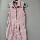 Tommy Hilfiger Shirt Dress Medium Red & White Sleeveless Pinstripe Button Front