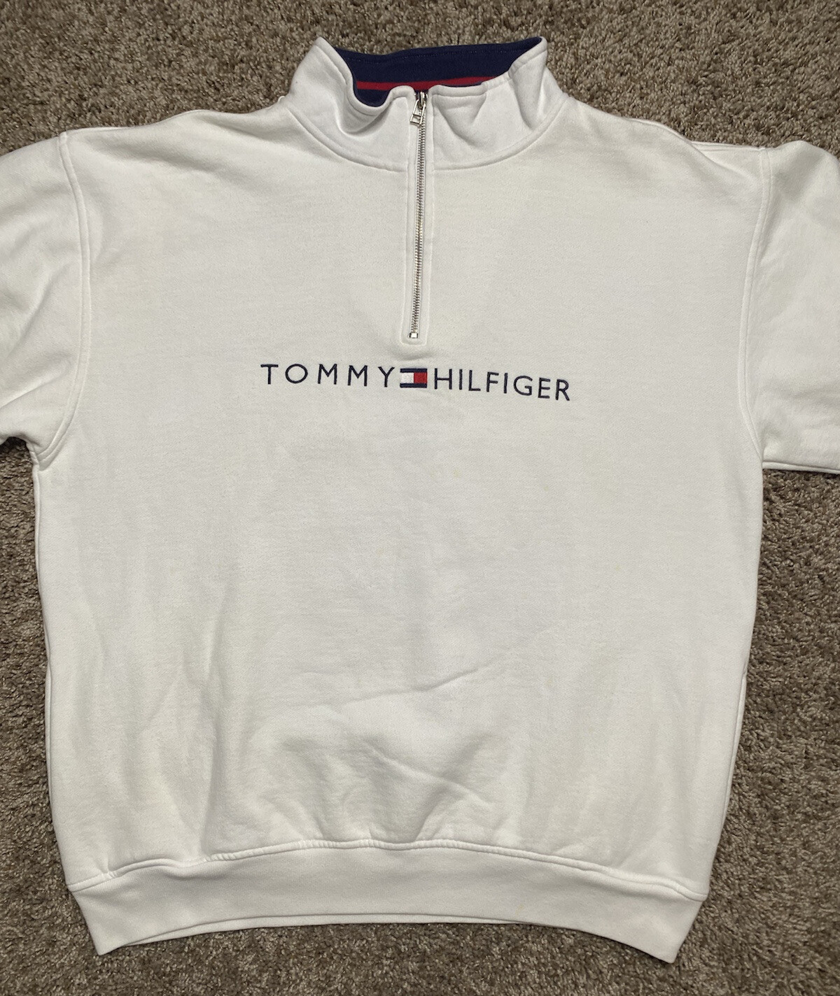 Pullover has faint stains throughout the front and back, not very noticeable but under the bright light it picks it up a lot. The red near the tag has bleed through the back of sweater from washing. Overall the jacket is in good condition for its age. No holes. Stains could be removed via slot treatment. The jacket also has pockets which is very nice. The measurements are 26 inches in the chest, and 29.5 inches from top of shoulder to hem. Sleeve length is in the picture, please view for full detail. Any questions feel free to ask!