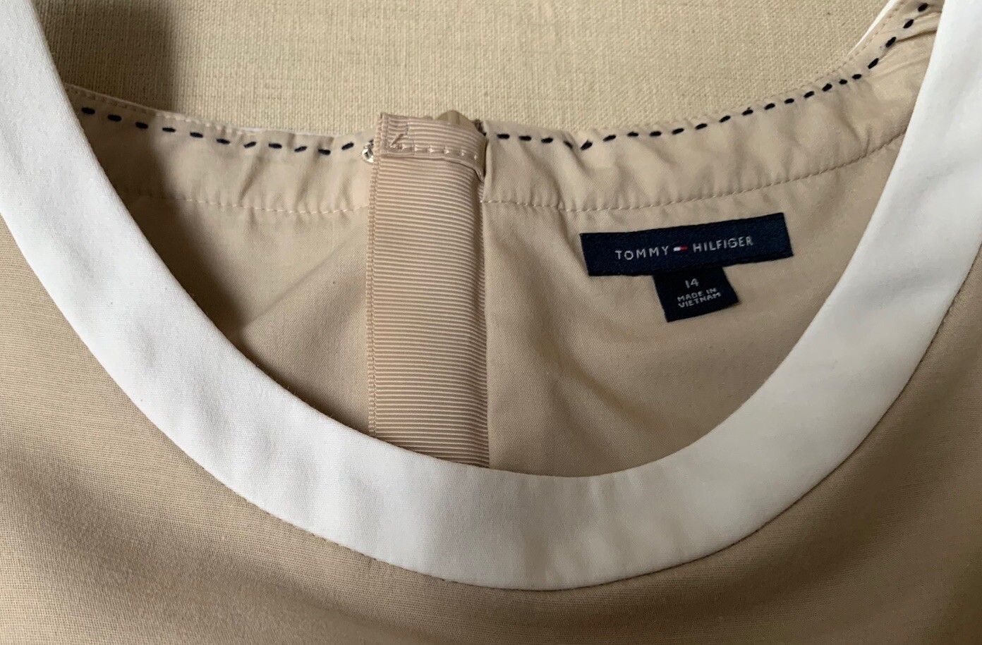 This Tommy Hilfiger dress is a stylish and versatile addition to any woman's wardrobe. The dress features a solid tan and black color scheme with a sleeveless design, round neckline, and zip closure. Made from a blend of elastine, viscose, and cotton, this stretchy dress is perfect for casual occasions and offers a comfortable fit. The knee-length dress also includes accents like a zipper detail and Tommy Hilfiger logo, making it a chic and fashionable choice for the warmer seasons of summer, fall, and spring.