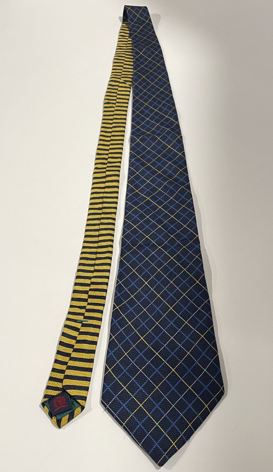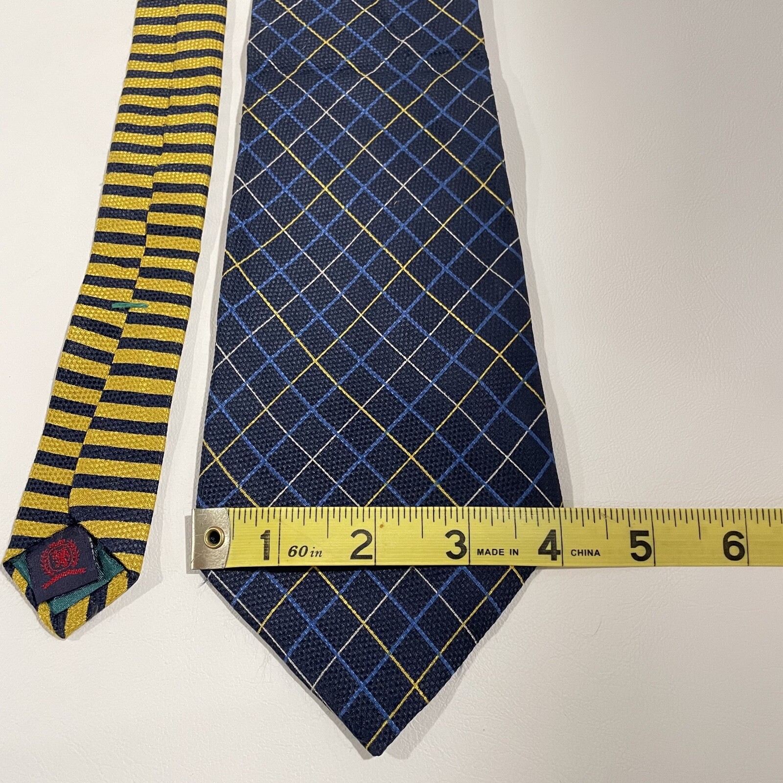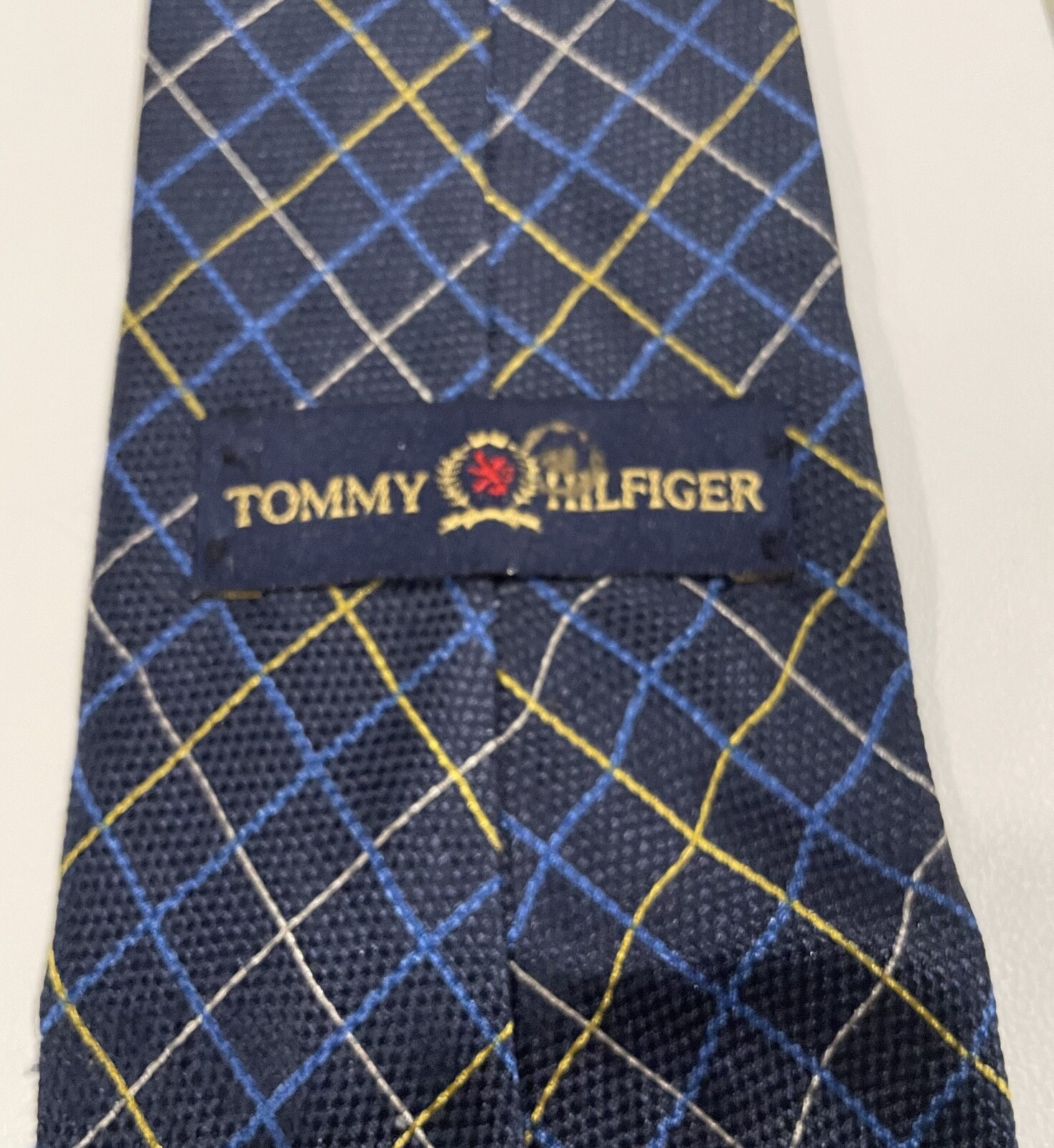 Tommy Hilfiger Tie Plaid and Stripes Blue with Yellow lines.