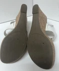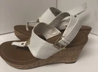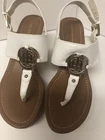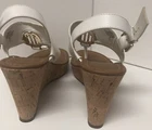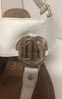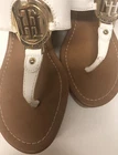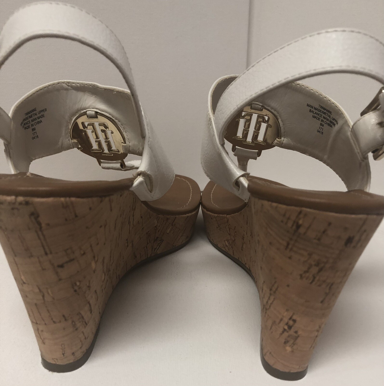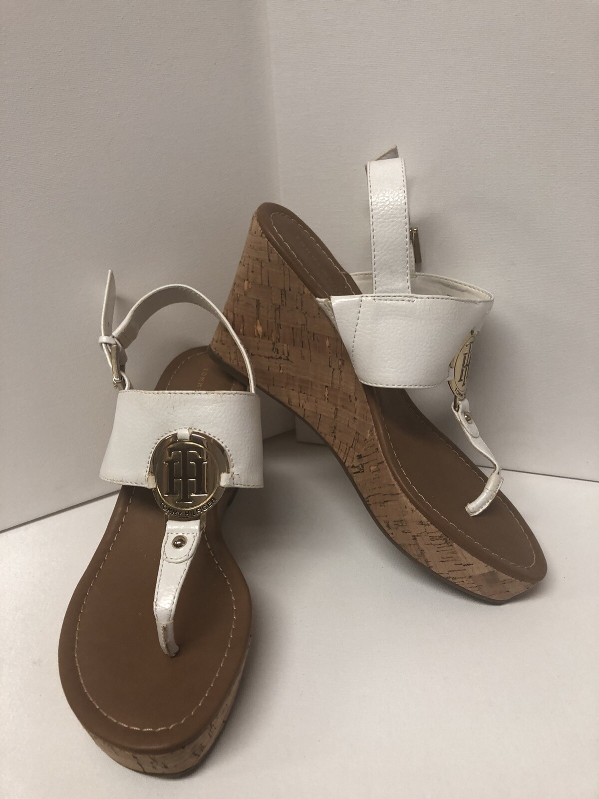 Elevate your spring and summer style with these white Tommy Hilfiger strappy sandals. The buckle closure provides a secure fit while the wedge heel adds a touch of sophistication. The cork outsole and faux leather insole ensure comfort and durability. The ankle strap feature adds a cute touch to these casual sandals. The Tommy Hilfiger logo accents give a vintage feel to these modern sandals. These size 8M sandals are perfect for any occasion, from a day at the beach to a casual dinner with friends. Please note I have no control over shipping costs. Packages are weighed using a US postal scale and dimensions are measured for accuracy. The Post office determines the cost by actual weight, dimensions of packages and location. of delivery. Item is NOT in original box! Thank you for considering my items. If you have any questions please ask before bidding. All sales are final. Returns are not accepted. Thanks again and Happy Bidding! Item # (S 010) Square brown recycled box.
