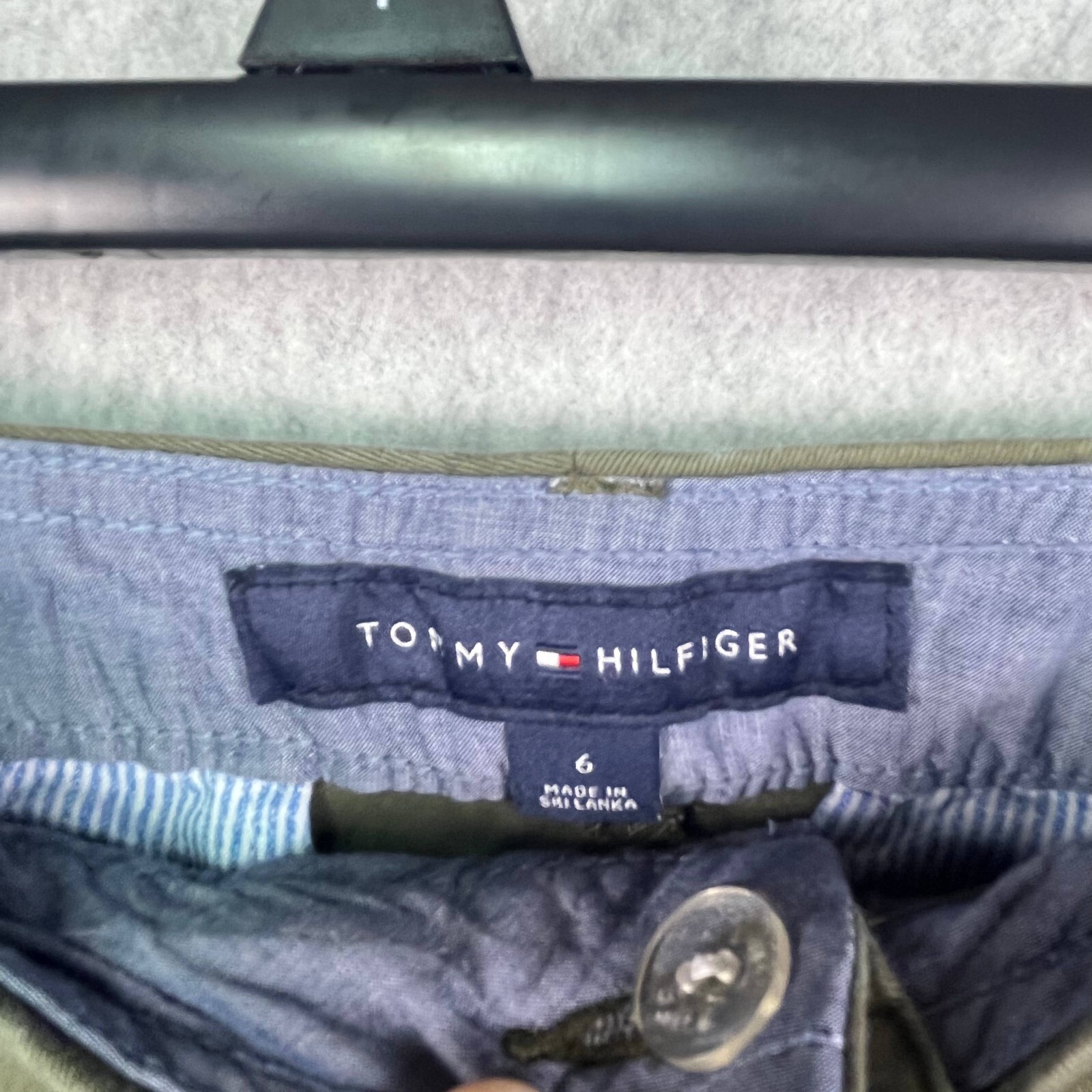 Tommy Hilfiger Chino Shorts Women's Size 6 Green Flat Front Belt Loop Pockets Item Description Tommy Hilfiger Chino Shorts Women's Size 6 Green Flat Front Belt Loop Pockets. Tommy Hilfiger Chino Shorts in a fresh green color. Designed for both style and comfort, these Women’s Size 6 shorts feature a flat front design, belt loops, and functional pockets, offering both practicality and sophistication. The lightweight chino fabric ensures comfort for warmer weather, while the versatile green color makes these shorts easy to pair with a variety of tops, making them perfect for a day at the beach, a casual outing, or even a more laid-back office setting. Features : Brand: Tommy Hilfiger Gender: Women Type: Shorts Size: 6 Color: Green Waist : 32" Inseam : 8.5" Rise: 9 '' Thanks for looking! Feel free to message with any question .
