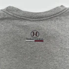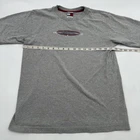 The product is a Tommy Hilfiger women's t-shirt in size large, featuring a graphic print logo in gray color. It has a classic style with a round neckline, short sleeves, and a pullover closure, made from cotton material. The t-shirt is suitable for casual occasions and has a regular fit. This basic yet stylish top is easy to care for and is perfect for everyday wear, offering comfort and a touch of nostalgia with the Tommy Hilfiger brand. *Check the images above for the flaws and measurements of the item.