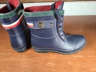 Tommy Hilfiger Renegade Short Rubber Rain Boots Women's Size 6 Navy Blue Lace Up. Tommy Hilfiger Boots are in preowned condition. See pictures for details. Please ask any questions before purchase. If there is any issue, please contact us first before leaving feedback. Thank you.