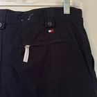 Tommy Hilfiger women’s casual chino-style pants in a versatile navy blue. Features a drawstring waistband for adjustable comfort with button tab closures. Designed with side pockets and a back zippered pocket accented with the signature Tommy flag logo. The cuffs can be rolled and buttoned up for a relaxed, cropped look, with a striped interior detail for added style. Size 8 (women’s). Color: Navy Blue Size: Women’s 8 Adjustable drawstring waist & belt loops Roll-tab cuffs with striped accent Side pockets & back zip pocket Casual chino fabric Tommy Hilfiger flag logo detail Ideal for casual, travel, or resort wear Never worn, excellent condition. See photos for details. From a smoke-free, pet-free home. Please message me with any questions.