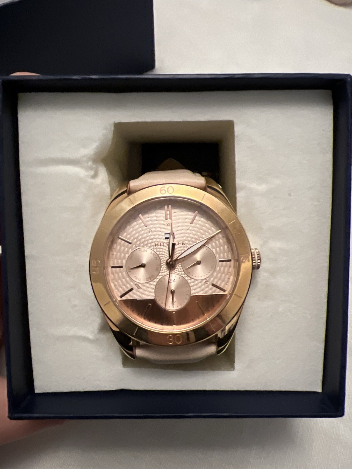 Tommy Hilfiger Women’s Rose Gold Dial Watch with Pink Leather Strap Condition: new without tags, some minor scuffs along the outside dial