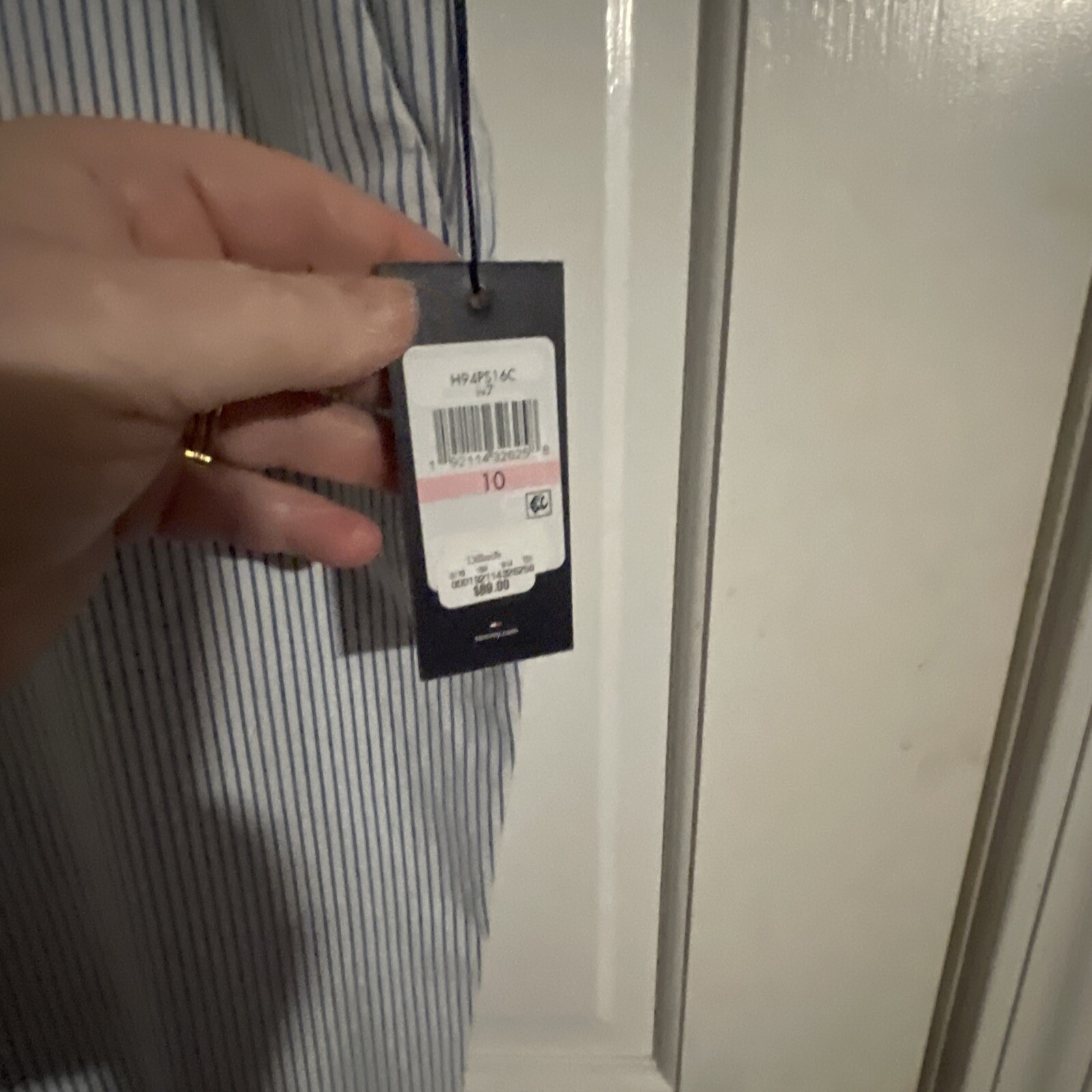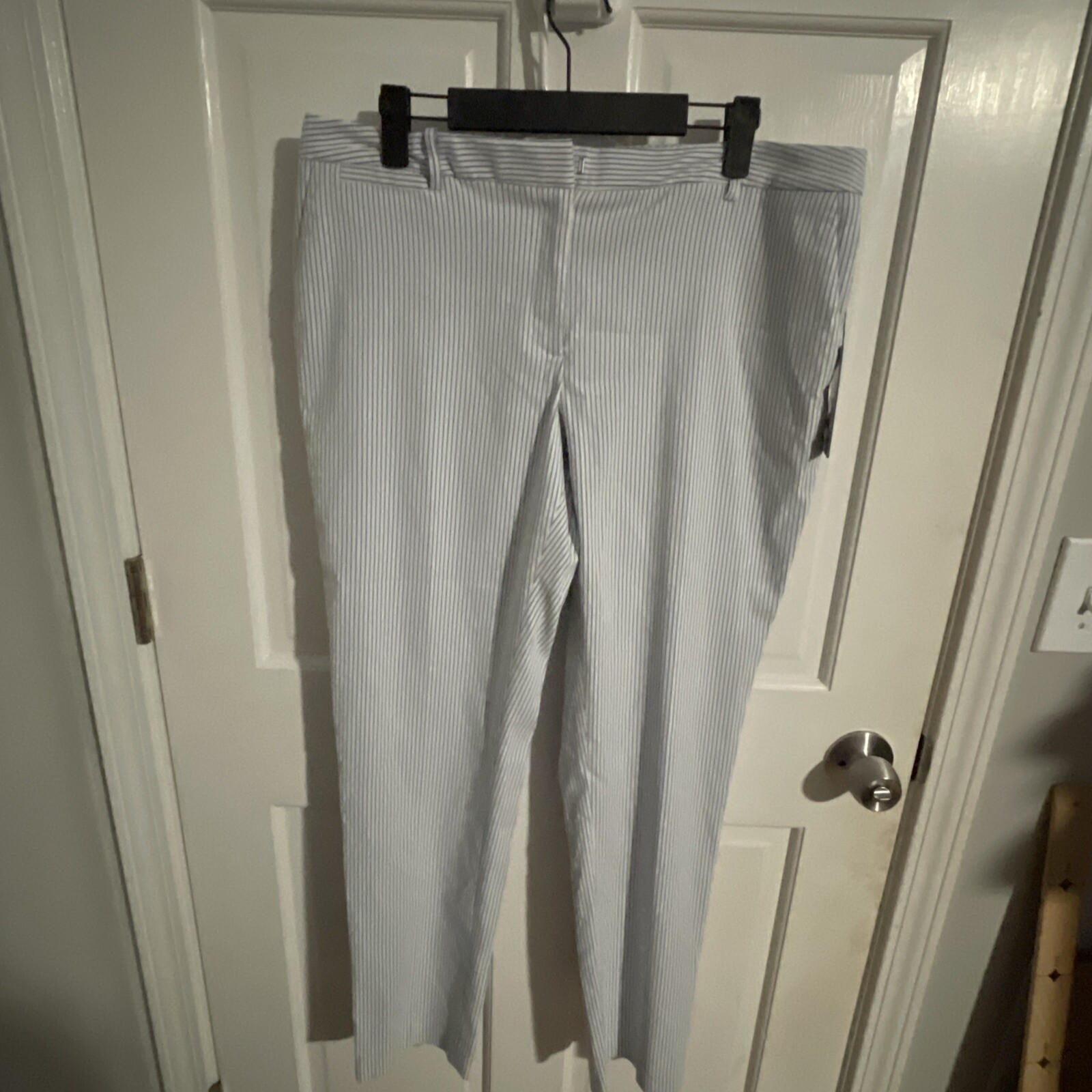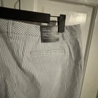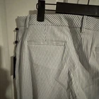 Tommy Hilfiger Women’s Size 10 Blue White Stripe Pants featuring a Chino style with a Striped pattern. These pants have a Zip and Button closure, Rear Pockets, and a Belted waist. Made of Cotton, they have a Regular fit with a Straight leg style. Ideal for Travel, Casual, or Business occasions in Summer, Fall, or Spring seasons. Machine Washable for easy care.