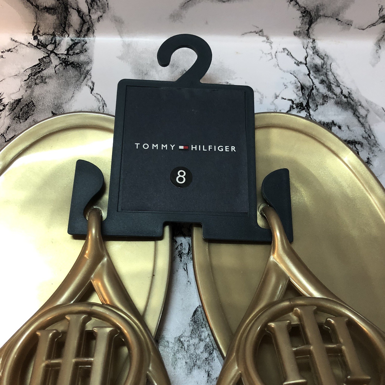 Tommy Hilfiger Womens Vedna Cutout Logo Jelly Thong Sandals Gold Size 8 Beach New with tags. There was never a box with these.