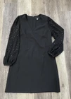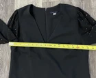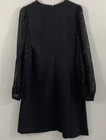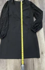 Tommy Hilfiger womens size 10 black shift dress with chiffon long rhinestone twinkly sleeves vneck back zip closure polyester spandex measurements inphotos great condition!