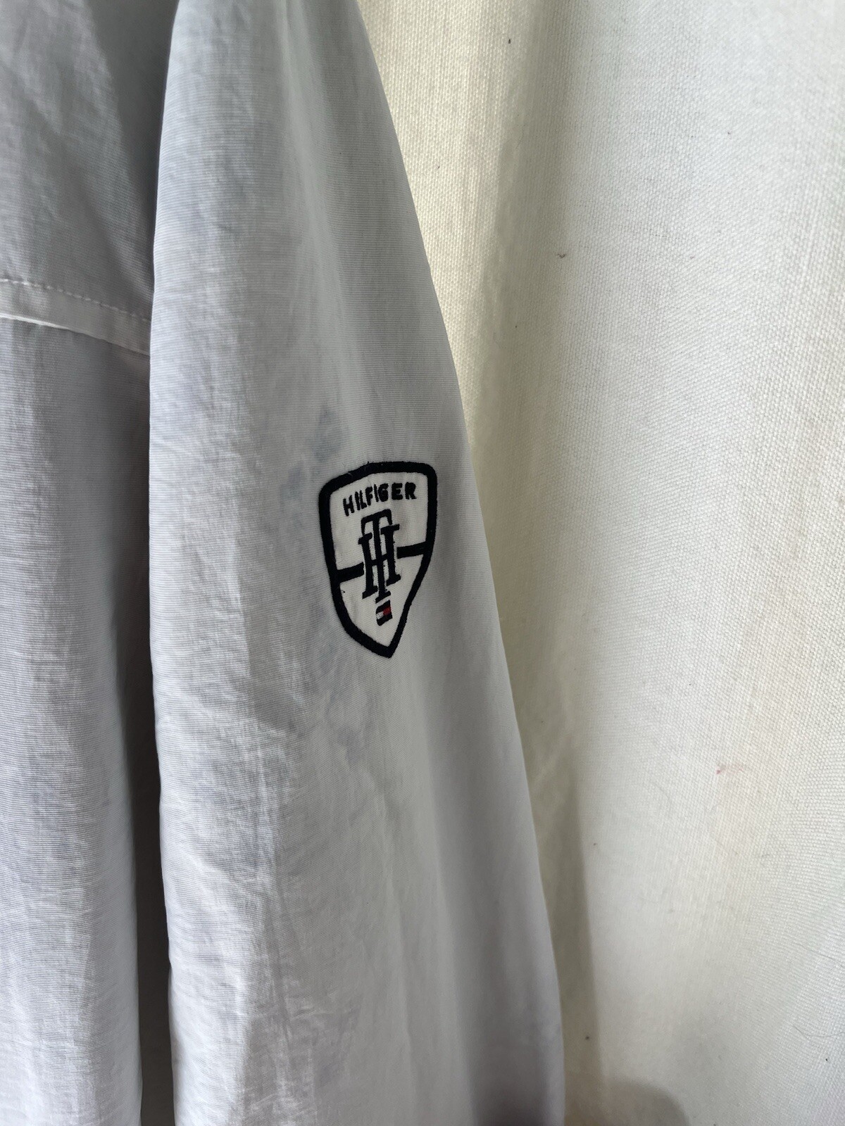 Tommy Hilfiger water resistant yacht jacket with the hood. Please see pictures blue ran when I washed it. Priced Accordingly or shoot me an offer or any questions you may have