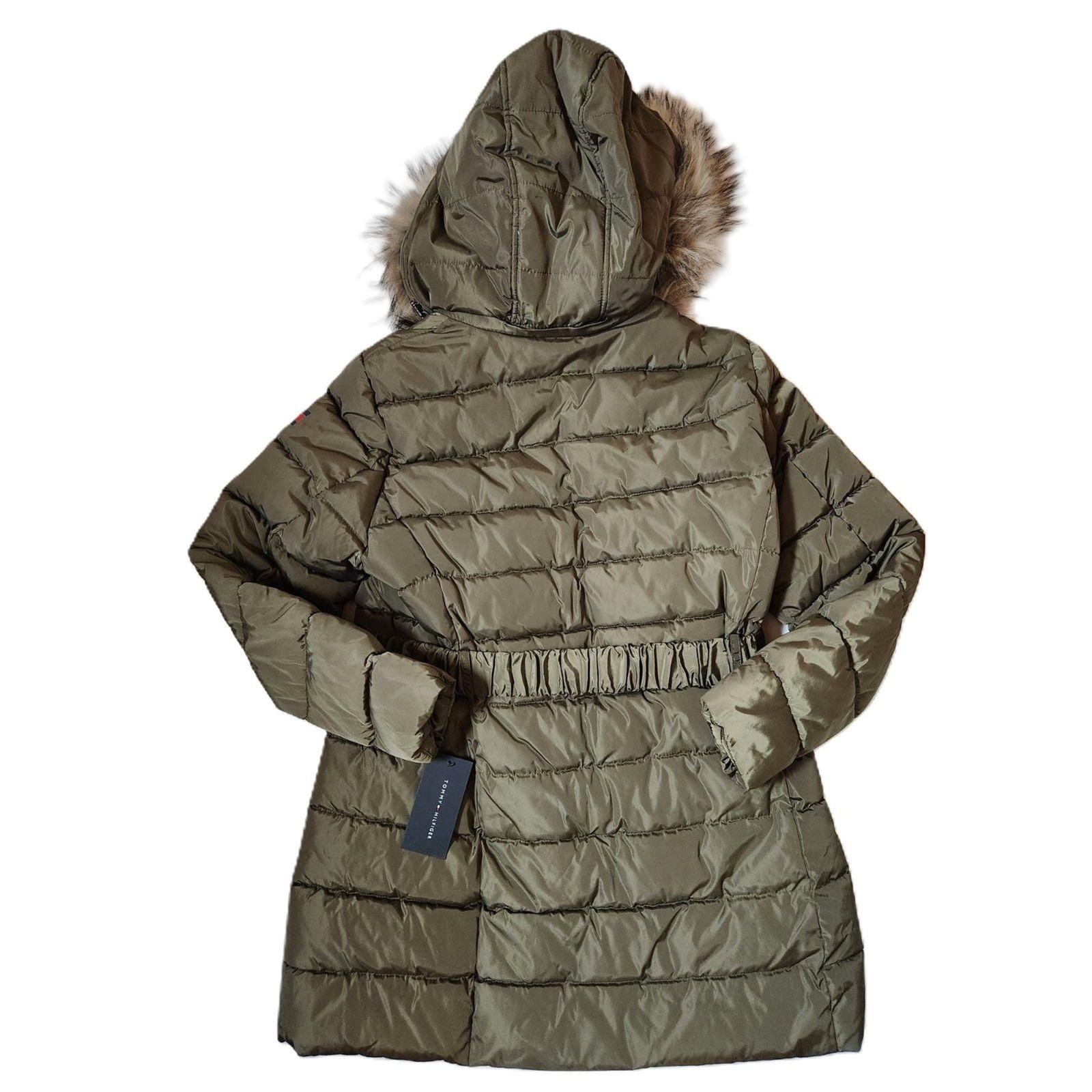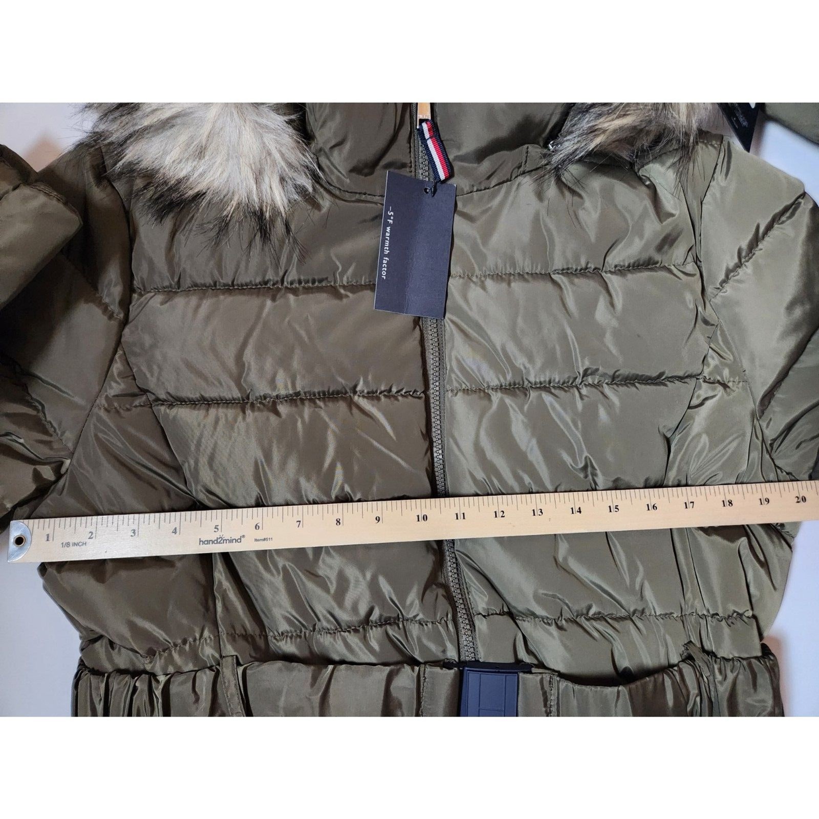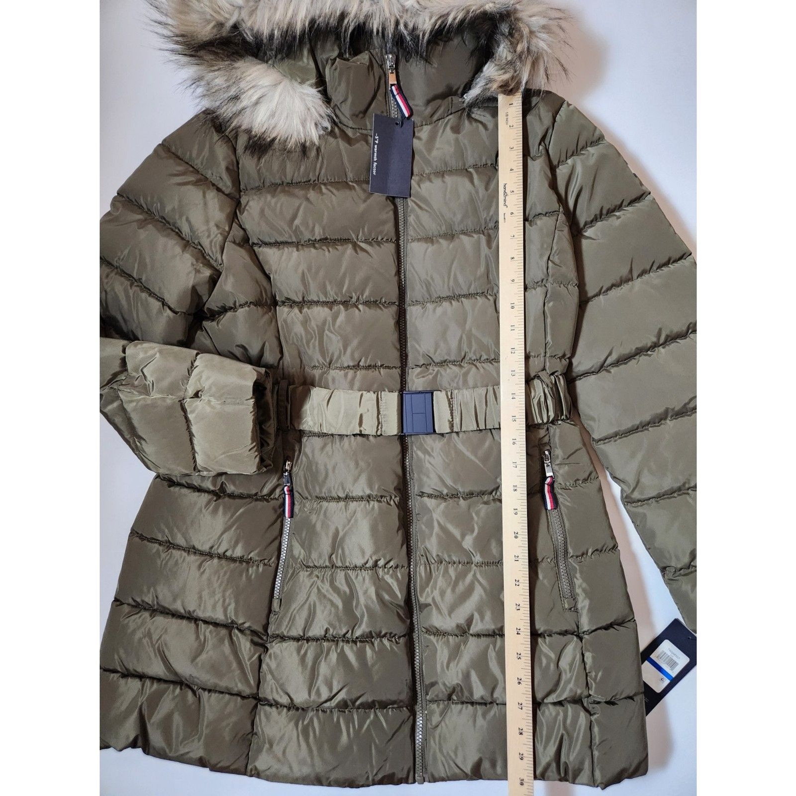 Tommy Hilfiger belted puffer jacket - with removable hood juniper green color logo on arm Women's size XL new unworn condition with tags Questions? Just ask!