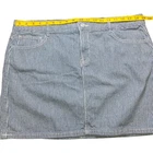 Tommy Hilfilger blue pinstripe denim mini skirt Features: mini skirt, zipper and button closure, belt loop, five functional pockets, plus size Condition: Very good pre-owned condition. No rips, holes, or stains. Size: Women Size 16 Measurements Waist: 19” Length: 16.5” Please see photos. Measurements are approximate and taken while garment is laid flat. To ensure a good fitting, compare these measurements to a garment you currently own. Style profile: summer, casual, nautical, Fourth of July, BBQ, movies, school, college, preppy, mall, Y2K