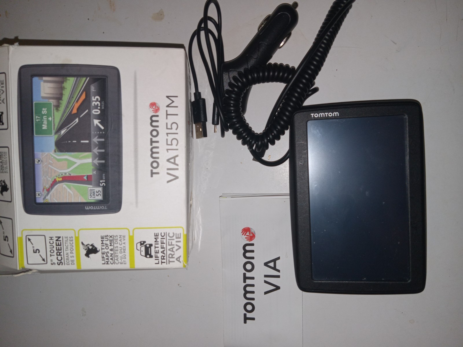 Tomtom Via 1515tm - U.S, Canada & Mexico Lifetime Map & Traffic Updates Used but like new, still with box, car mount, car charger, cord for wall charger and 16gb micro SD card