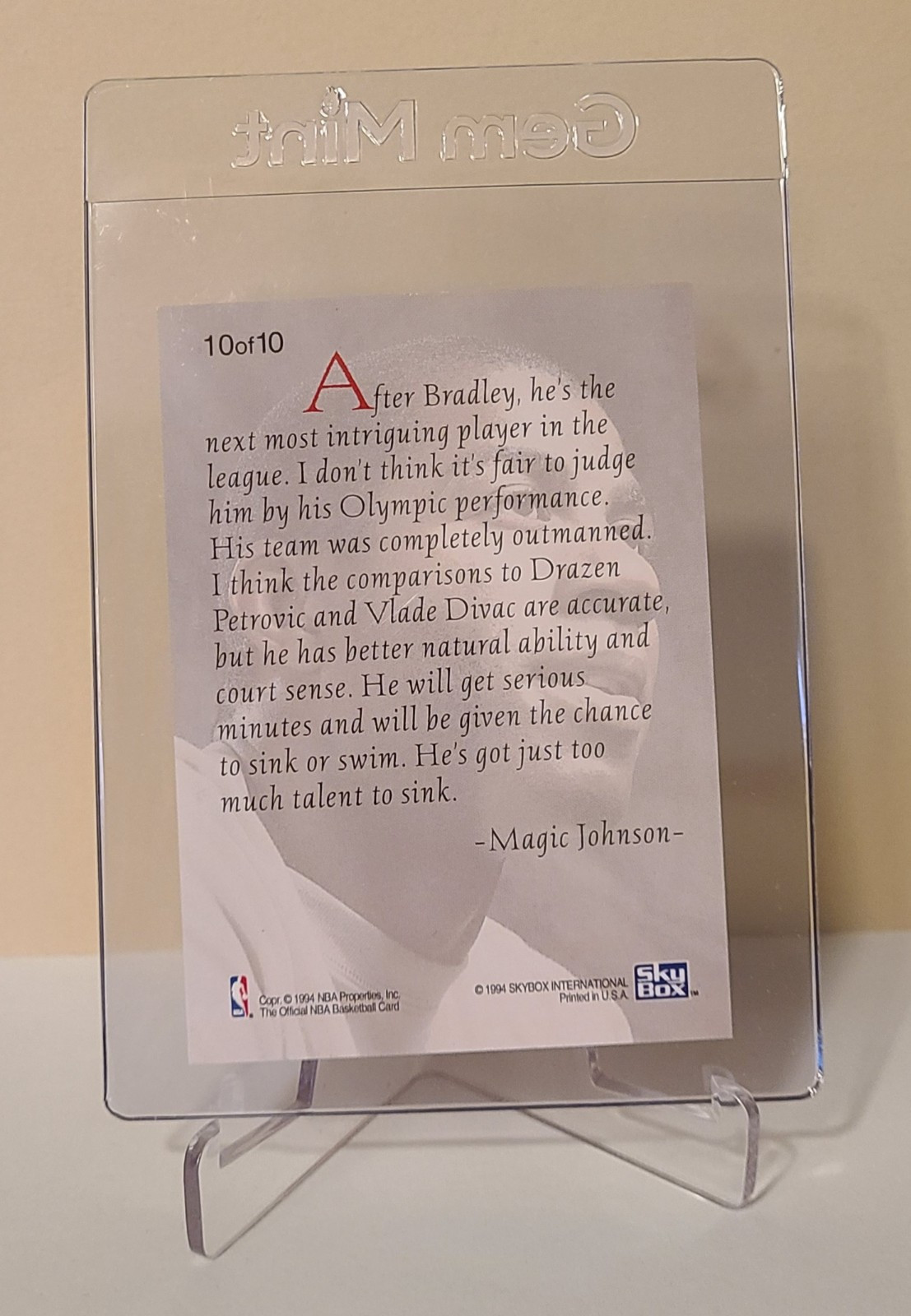 The product is a Toni Kukoc 1993 rookie trading card featuring him as a member of the Chicago Bulls. This vintage card is part of the All Rookie Team series, showcasing Kukoc's early career in the National Basketball Association (NBA). It is a valuable piece for collectors interested in sports trading cards, particularly those focusing on basketball memorabilia from the 1990s.