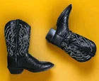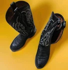 Step into timeless style with the Tony Lama Men's Black Ostrich Round Toe Cowboy Boots. Crafted with meticulous attention to detail, these boots feature a sleek black ostrich leather upper and a durable leather outsole, perfect for those who appreciate a blend of luxury and durability. The round toe design ensures a comfortable fit, making them suitable for any casual occasion. Designed with the modern cowboy in mind, the boots boast an array of features including comfort technology for all-day wear, an embroidered accent for a touch of sophistication, and a mid-calf shaft for a classic silhouette. The versatile low heel makes them an ideal choice for an array of seasons, ensuring you're well-dressed for any outdoor adventure.