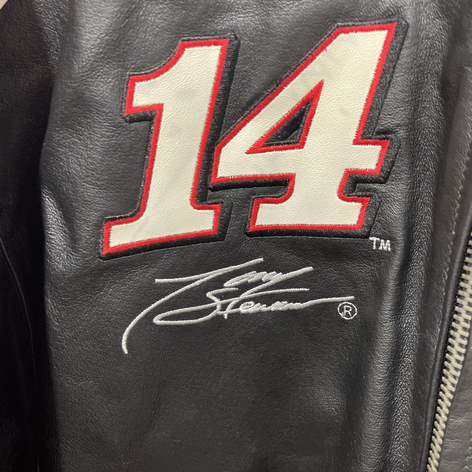 B10-0021: The Tony Stewart Vintage NASCAR Home Depot Racing Sports Bomber Jacket in size XL is an officially licensed and authentic piece for fans of auto racing and NASCAR. Made by Chase, this black jacket features the iconic Tony Stewart design, perfect for male sports enthusiasts looking to show their support for the driver. The bomber style and high-quality construction make it a stylish and comfortable addition to any fan's wardrobe, representing the legacy of Tony Stewart in the world of racing.
