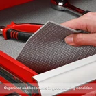 Include: Professional Tool Box and Drawer Liner, Grey, 24inch (wide) X 24feet (long) Professional Tool Box and Drawer Liner, Grey Professional Tool Box and Drawer Liner, Grey, Easy Cut Non-Slip Foam Rubber Toolbox Drawer Liner Mat - Adjustable Thick Cabinet Liners, 24inch (Wide) X 24feet (Long) This rubber mat roll can be put to a wide variety of uses from making gaskets or seals to lining your tool box, file cabinet, or drawers, and also makes great craft foam. The textured grip is non-adhesive which makes repositioning into any space a breeze. And non-slip top and bottom surface keep tools from sliding. The foam mat is tough enough to support any heavy tools, and grid lines for easy measuring and cutting and can be easily cut with a pair of scissors or a razor. On Jan 12, 2025 at 23:07:41 PST, seller added the following information: