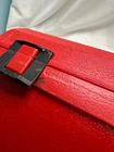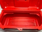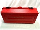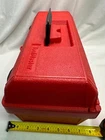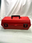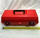 Toolmaster Red & Black Tool Box W/ Removable Tote Latch & Handle Tackle Box Scuffs, marks, dings. Please look over the pictures thoroughly for condition. Tape measure in pictures for size reference.