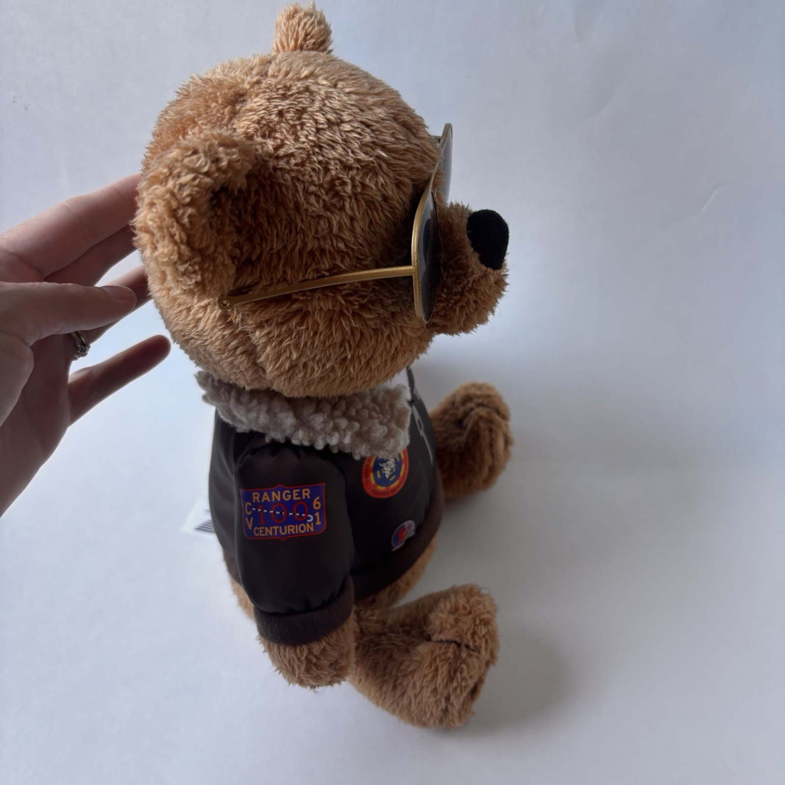The Top Gun Musical Teddy Bear Plush is a 10" brown bear that plays "Danger Zone" and other songs from the movie Top Gun. With Maverick Tom Cruise in mind, this 2020 release is perfect for fans of the classic film and those who love stuffed animals. Recommended for ages 3 and up, this adorable bear brings a piece of the iconic movie to life with its musical capabilities. Works great. Fast shipping from a smoke free and pet free home.