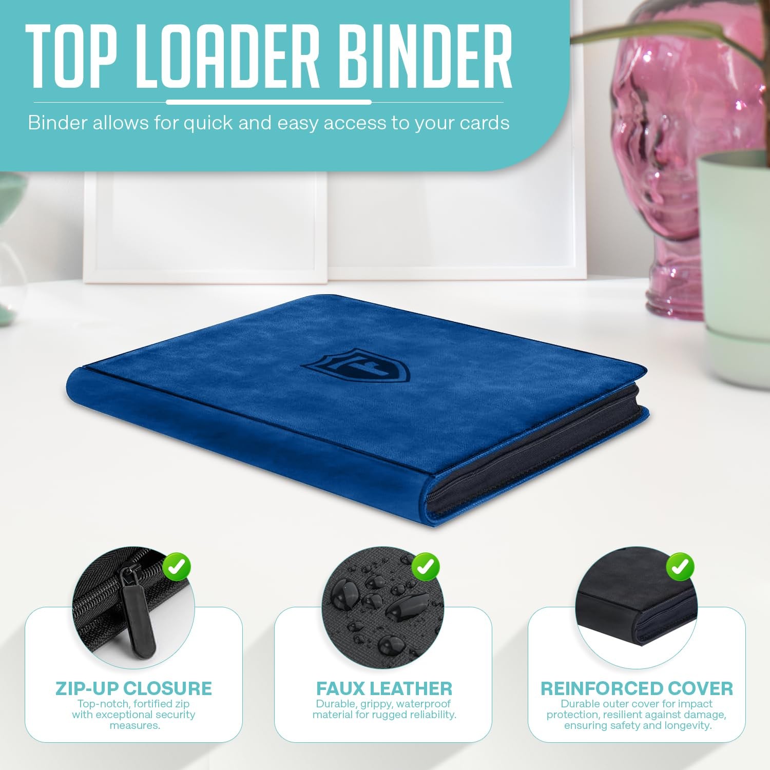 Keep your trading card collection organized and protected with the Top Loader Binder. This top loader binder for cards features 9 pockets capable of holding up to 288 sleeves, providing ample space for your sports cards, hockey cards, Yugioh, MTG, UNO and other trading cards. Crafted with premium quality materials, it offers durability and long-lasting protection for your valuable cards. The top-loading design ensures easy access, allowing you to effortlessly insert and remove cards as needed. Whether you're a collector, a gamer, or a hobbyist, this binder is the perfect solution for keeping your cards organized and safe. Compact and portable, it's ideal for both home storage and travel. Upgrade your card storage experience with the Top Loader Binder. COMPREHENSIVE CARD STORAGE: Our Top Loader Binder 9 pockets that holds 288 toploaders designed to accommodate a wide range of trading cards, including Sports cards, hockey cards, MTG cards, and more. This toploader binder keeps your 288 card sleeves organized and protect your valuable collection. PROTECTION AND DURABILITY: Crafted from high-quality materials, our top loader binder ensures long-lasting protection for your cards against wear, tear,and damage. EFFORTLESS ACCESSIBILITY: Featuring a convenient top-loading design, our binder allows for quick and easy access to your cards whenever you need them. The hassle-free access provided by our binder enhances your overall experience.
