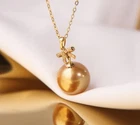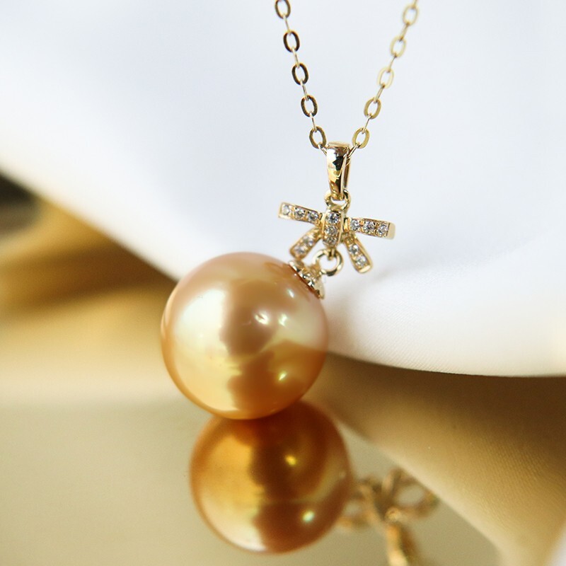 •Condition: Brand new •Center Stone: Superior Natural South Sea Golden Pearl 10-11mm/11-12mm/12-13mm/13-14mm ( Optional) •Side Stone: Natural White Diamond (VVS clarity with F color) •Pearl Shape: Perfectly Round •Metal Purity: 18K Solid Yellow Gold •Chain Length: 40 to 45cm (adjustable) •Made in Japan •In the pearl industry, the standard for superior pearls is that 99% of the natural pearl surface must be clean. To find the natural imperfections, an extremely detailed and close-up examination of the pearl is required. Each piece is made to order with care and special attention to detail. All items are crafted using conflict-free gemstones, and a gold stamp (hallmark) is assayed for our products. Additionally, each item comes with a certificate card. The item will be gift wrapped and shipped. ------------------------------------------------------------------- Available in: 14k Rose or Yellow Gold, White Gold 18k Rose or Yellow Gold, White Gold and Platinum 950 ask us before you put the order if you wanna customize different materials. ------------SHIPPING AND MAKING TIME------------ Each item will be gift-wrapped and shipped. The item will be finished and ready to ship within 1-2 weeks from the time of payment. The default shipping method via DHL takes 5-8 business days to reach any destination in the United States and worldwide. You can upgrade to express shipping, which will reduce the delivery time to 3-5 days. Need help? Feel free to ask us a question! :) Thank you!