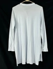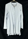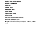 Eileen Fisher Button Up Shirt Women's Size Medium Chest: 18" Length: 30-32" Band Collar Neck Long sleeve 100% organic cotton Long Length pale blue (white large in my store) Side split hem longer back More by Eileen Fisher in my store (tops, bottoms, jackets etc)