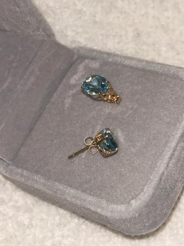Sophisticated earrings in 14k yellow gold, adorned with a delicately sparkling natural topaz, complemented by natural diamonds that add a subtle touch of luxury and exclusivity. A refined and timeless jewel, perfect for special occasions or to elegantly elevate an everyday look. Jewelry details: ✨ Metal: 14k yellow gold ✨ Main stone: Natural topaz ✨ Topaz weight: 3.50 ct ✨ Diamonds: 6 natural diamonds ✨ Total diamond weight: 0.06 ct ✨ Total jewelry weight: 1.73 g A delicate, luminous and refined piece, ideal for those who value quality, sophistication and classic beauty.