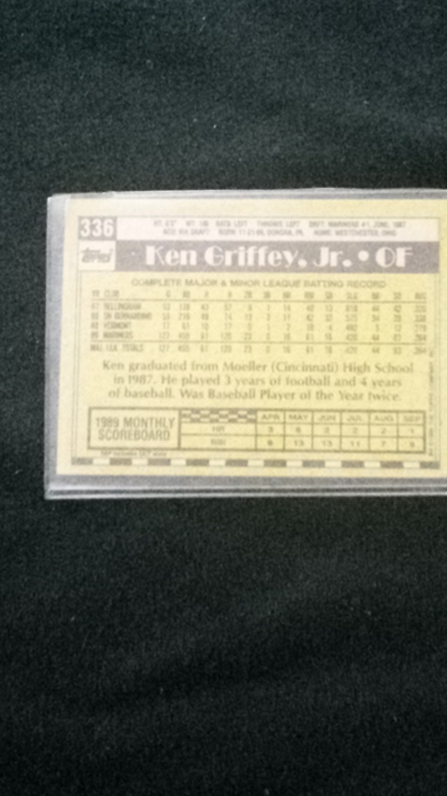 Topps 1989 Ken Griffey Jr. All-Star Rookie 336 Mariners MLB Baseball Card