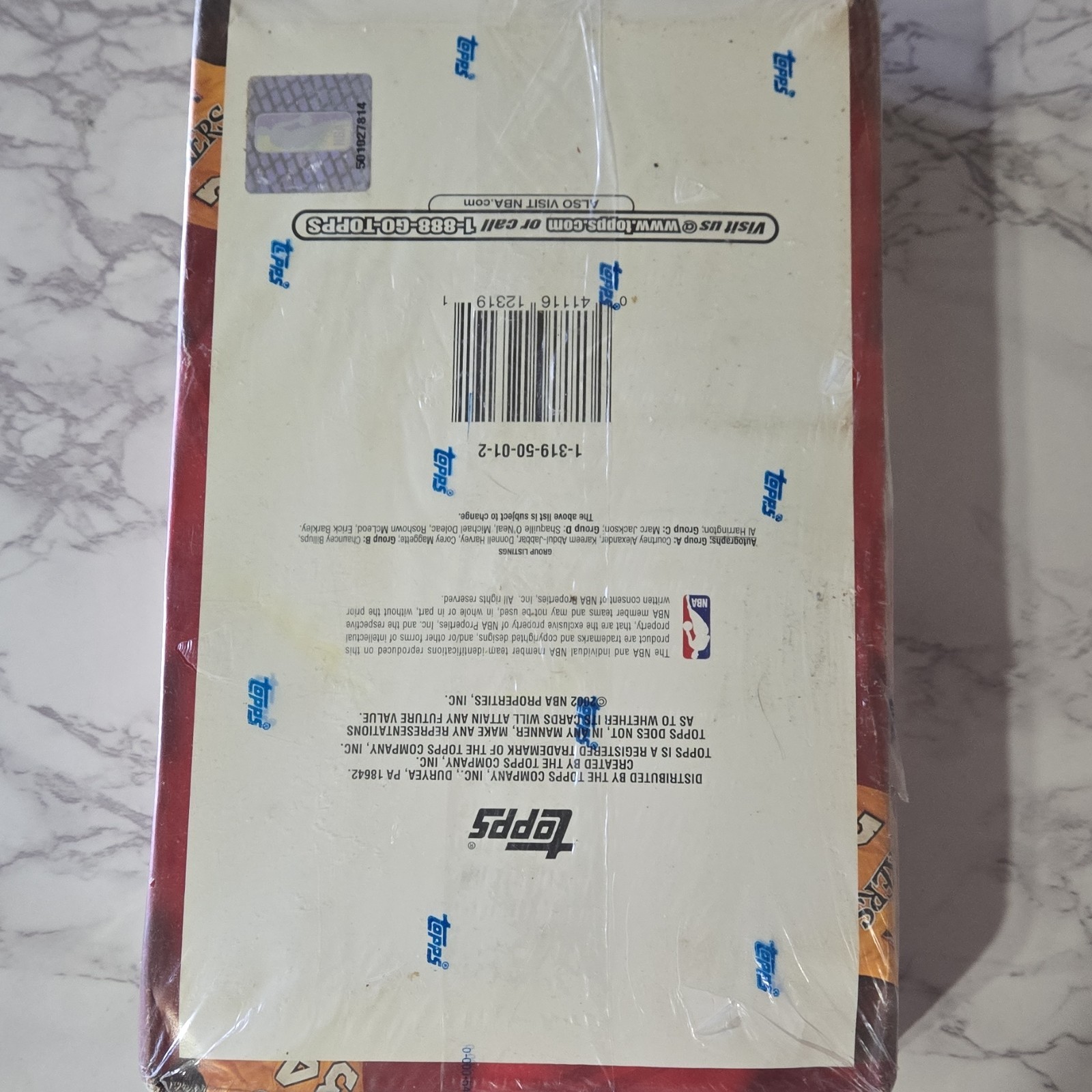 Material:Card StockYear Manufactured:2002League:National Basketball Association (NBA)Manufacturer:ToppsNumber of Cards:360MPN:1-319-50-01-2Features:Superstar Autographs, Slam Duncan, Shaq Attack Relic Series, All-Star Remnants, Vertically Coast to CoastCountry of Origin:United StatesTeam:Los Angeles LakersSeason:2002-03Sport:BasketballType:Sports Trading CardCard Size:StandardLanguage:EnglishConfiguration:BoxSet:2002-03 ToppsNumber of Boxes:1Player/Athlete:Shaquille O'Neal
